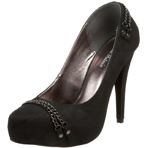 Cultivate a luscious look with help from Michael Antonio's Lace pump. The classic silhouette is modernized with a hidden platform and sharp seamed toe, while rows of chains add edgy charm.
