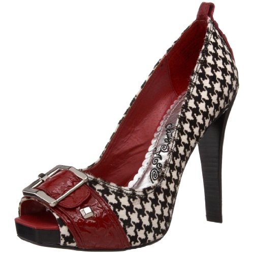 ? Walk the leading edge of modern fashion in this stylish pump ? Houndstooth printed leather upper ? Buckled strap vamp accent over alluring peep-toe cutout ? Lightly cushioned footbed ? Manmade sole ? 4-3/8" heel height