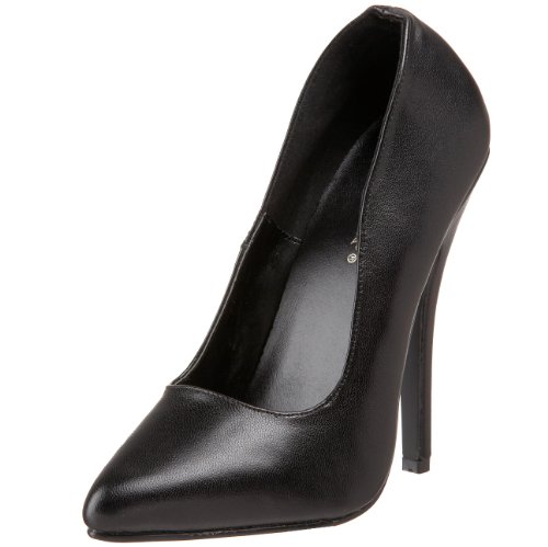 Pleaser stretches a classic silhouette to its limits with the head-turning Domina pump. This attention-getting shoe is fashioned with a shiny synthetic upper and exudes pure sex appeal, from its softly pointed toe to its towering stiletto heel.