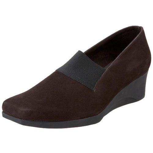 Experience cloud-like comfort and modern style in the Elton wedges from Arche. Suede upper in a casual slip-on wedge style with a square toe. Elastic goring at vamp for supreme comfort. Soft fabric lining, cushioned insole. Extremely flexible midsole, traction-pattern latex rubber outsole. 2 inch wedge heel. Made in France.
