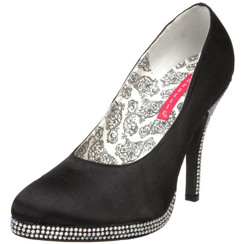 TEMPT-39-Black Satin-Iridescent Rhinestones-6 Size: 6 Tempt-39 Pump by Bordello Features: -Tempt-39 Pump in Black Satin-Iridescent Rhinestones. -Part of the Tempt collection. -Satin pump. -0.5'' Rhinestone platform. -4.5'' heel height. -Available in Black Satin-Iridescent Rhinestones (TEMPT-39-Black Satin-Iridescent Rhinestones).