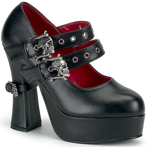 DEMON-16-Black PU-6 Size: 6 Demon-16 Pump by Demonia Features: -Women's Demon-16 Pump in Black PU. -Part of the Demon collection. -5'' heel. -Available in Black PU (DEMON16/B/PU).