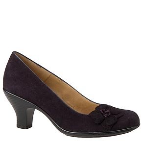 Heel Height: Approx. 2 3/4'' Tall. A flowered pump perfect for days at the office or evenings out. Offered in soft Nappa and rich suede leathers. Layered, mixed material flower. Pillowtop comfort footbed.