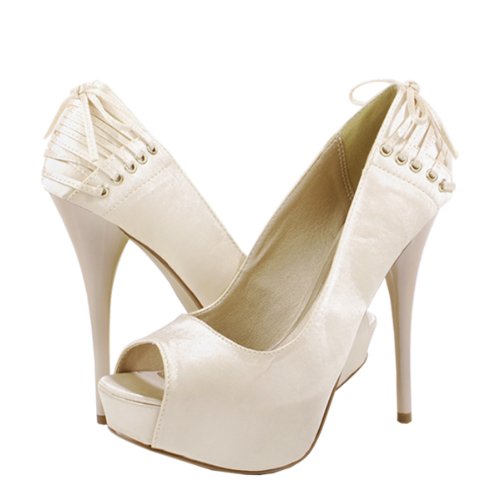 Feel fancy and free in these high heel pumps from Qupid. Neutral40 features a seductive satin body with a wide peep toe front with seductive lace up corset inspired heels. Complete with a 5.25 inch heel and 1.25 inch hidden platform. Be flirty and dress to impress! Available in 4 colors.