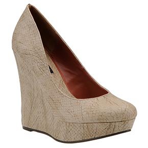 ? You'll want to flaunt this posh pump's dangerous curves everywhere ? Synthetic suede-like upper ? Lightly cushioned footbed ? Manmade sole ? 5" wedge heel
