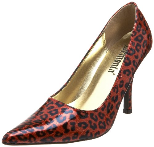 You're super-hot in the Sizzle pump from Pleaser. This seriously sexy shoe features a glossy metallic animal-print upper for a glam-tastic appeal. A pointed toe and slender high heel underscore the alluring silhouette.