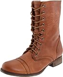 Steve Madden, the company, was founded by Steve Madden, the man, in 1990 in Brooklyn, where he started out making trend-advancing shoes one pair at a time. It was not long after that the Steve Madden focus on "now-ness" earned rave reviews from young female fans mad for the funky, chic, and yet competitively priced footwear it produced. The company popularized the "dressy sneaker," and continues to man the forefront of trends.It's hard to resist the allure of this Troopa boot from Steve Madden. The military-inspired design features a sturdy leather upper with lace-up and side-zip closures. Tuck skinny jeans into this on-trend yet classic boot, or pair it with skirts for a softer look. Read more